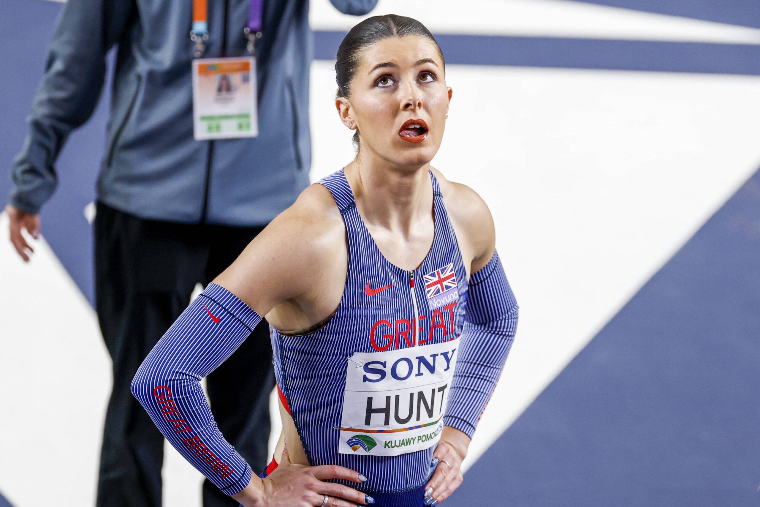Amy Hunt of Great Britain looks on after competing on the Women’s 60m Semifinal on Day 2 of the World Athletics Indoor Championships Kujawy Pomorze 2026 at Kujawsko Pomorska Arena Torun on March 21, 2026 in Torun, Poland. (Photo by Marcel ter Bals/DeFodi Images)