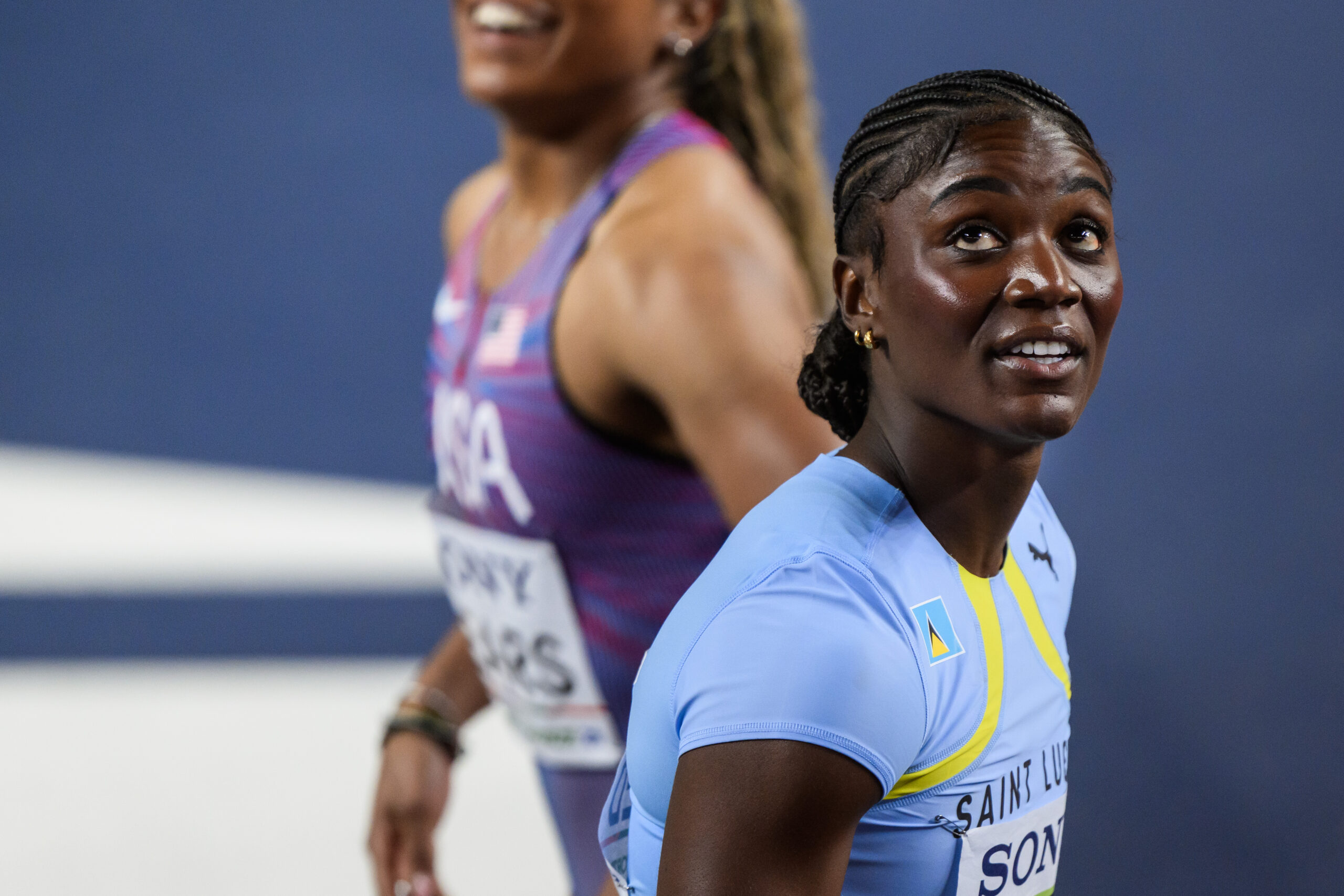 260321 Julien Alfred of Saint Lucia competes in women’s Women’s 60 Metres final during the 2026 World Athletics Indoor Championships on March 21, 2026 in Torun.