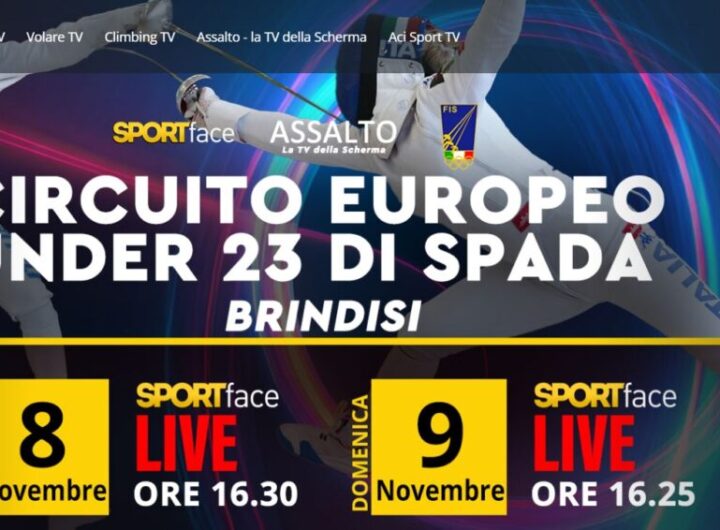 Domenica di grande scherma: live da Brindisi su “Assalto – La TV della Scherma”, ma si gareggia anche a Brescia, Budapest e Godollo Scherma Domenica di grande scherma: live da Brindisi su “Assalto – La TV della Scherma”, ma si gareggia anche a Brescia, Budapest e Godollo Francesco Monaco 9 Novembre 2025 Dalle 16 diretta su Sportface della tappa italiana del Circuito Europeo Under 23 di spada femminile. In...Read More