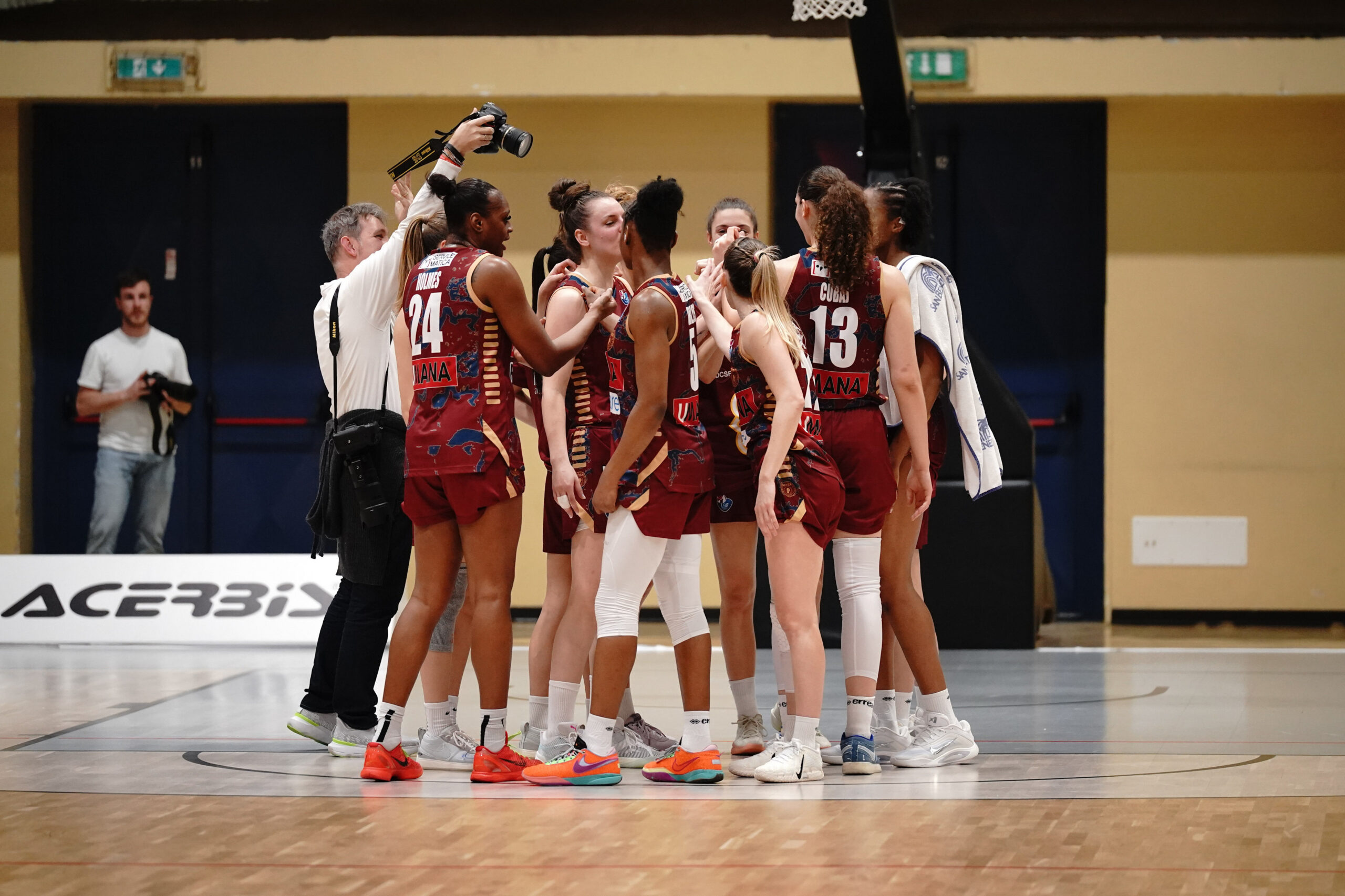 The team (Umana Reyer Venezia) celebrates the victory of the match during Geas Sesto San Giovanni vs Umana Reyer Venezia, Italian Basketball Serie A1 Women match in Cinisello Balsamo (MI), Italy, February 08 2026