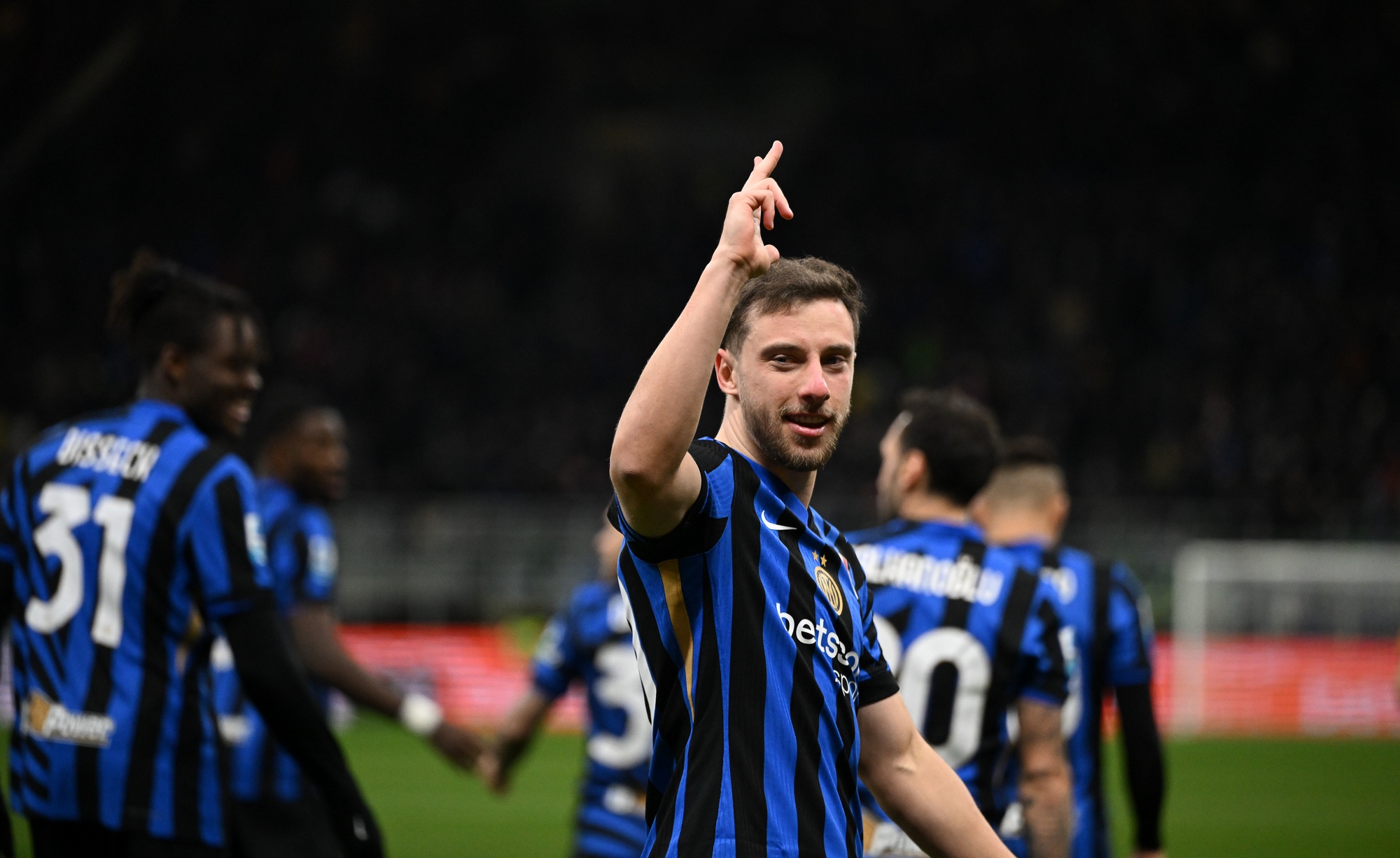 INTER (3-5-2): Sommer 6; Bisseck 6 (29′ st De Vrij 6), Bastoni 6, Carlos Augusto 7; Dumfries 5.5, Barella 5.5 (29′ st Zielinski 6), Calhanoglu 6, Mkhitaryan 6 (44′ st Frattesi sv), Dimarco 5.5 (35′ st Buchanan sv); Lautaro Martinez 6 (44′ st Taremi sv), Thuram 7.5. In panchina: J. Martinez, Calligaris, Arnautovic, Correa, Asllani, Palacios, Aidoo, Motta. Allenatore: Inzaghi 7