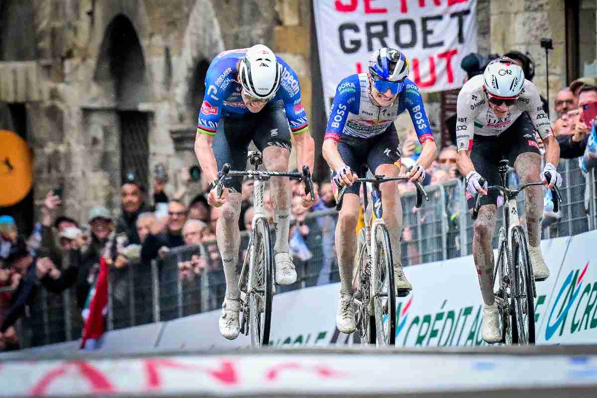A 4 chilometri dal traguardo ha provato ad anticipare tutti Wout van Aert del Team Visma che con uno scatto che ha acceso la corsa. L’azione del belga ha però avuto soprattutto l’effetto di selezionare il gruppo e preparare il terreno ai contrattacchi successivi. Poco dopo è stato infatti Ben Healy della EF Education-EasyPost a rilanciare l’azione con un nuovo tentativo.