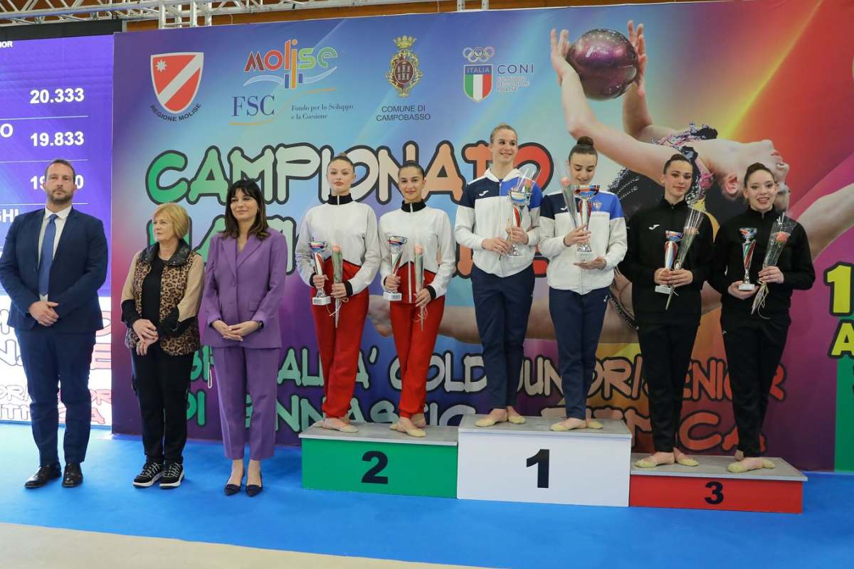 Campobasso ha ospitato, sabato 11 e domenica 12 aprile, il Campionato Nazionale di specialità junior e senior di ritmica. appuntamento che ha assegnato i titoli Gold della disciplina. La manifestazione si è svolta al Palazzetto dello Sport l’organizzazione della Sporting Bovianum, società guidata dalla presidente Salvatori Buontempo, in un fine settimane che ha celebrato il meglio del movimento italiano.