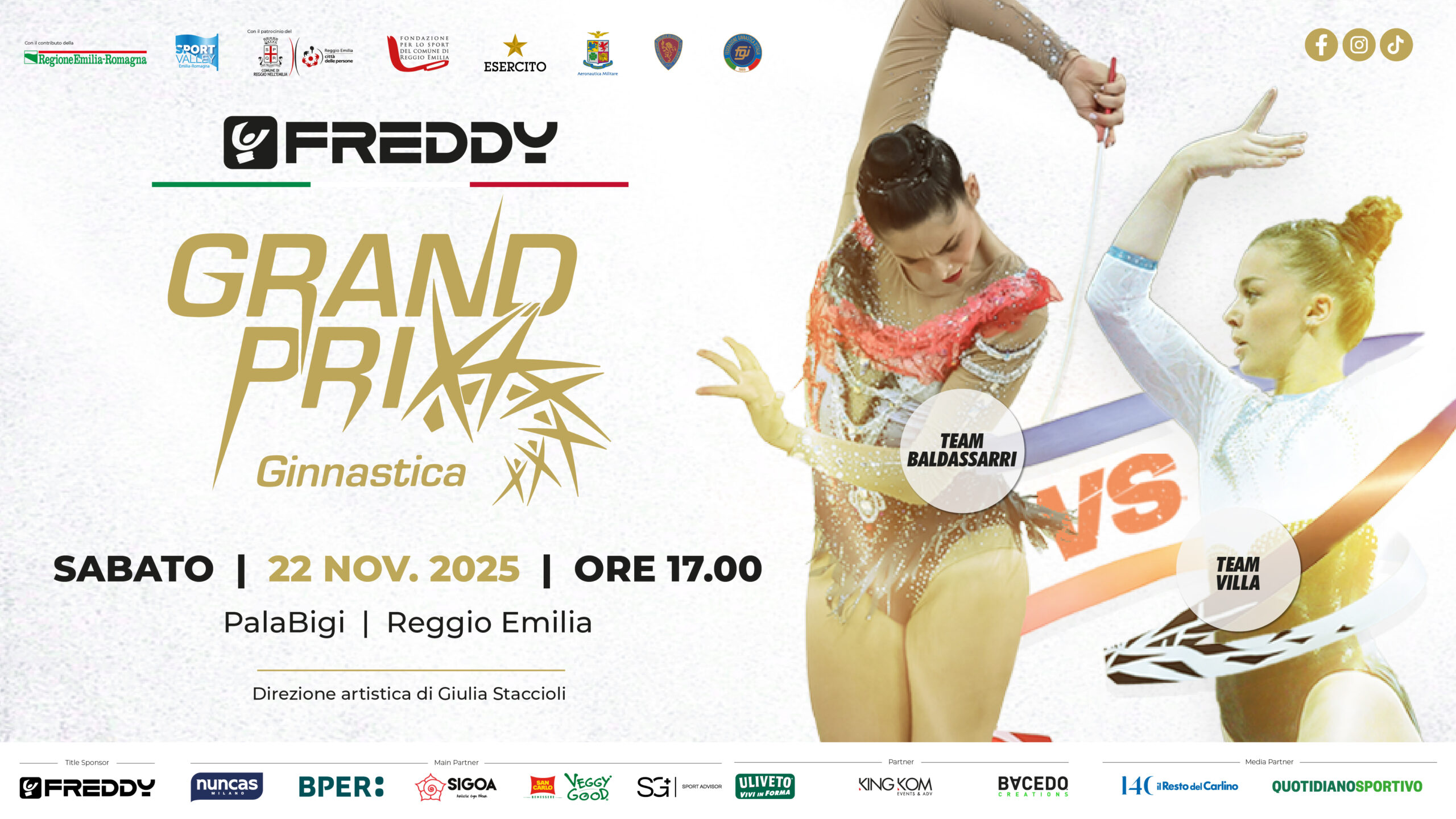 Reggio Emilia è pronta ad accogliere uno degli appuntamenti più attesi della stagione ginnica: il Freddy Grand Prix di Ginnastica 2025, in programma sabato 22 novembre al PalaBigi. L’evento – trasmesso in diretta su Sportface TV con collegamento dalle ore 16:30 e votabile attraverso i profili social ufficiali – unirà competizione, spettacolo e valorizzazione del territorio in una cornice unica, culla del Tricolore.