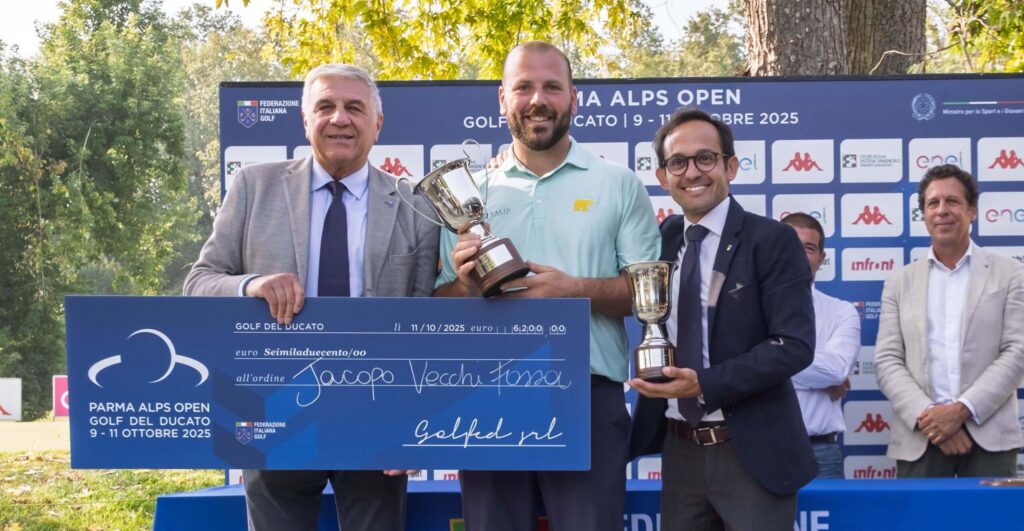 Festa italiana al Parma Alps Open. Sul percorso La Rocca del Golf del Ducato, Jacopo Vecchi Fossa ha firmato la vittoria con lo score di 202 colpi (65, 67, 70; -14), superando in un emozionante finale gli spagnoli Javier Barcos e Asier Aguirre Izcue, secondi a un solo colpo di distanza (-13). Un successo che vale doppio: oltre al trofeo, il 31enne di Reggio Emilia ha ottenuto la carta per l’HotelPlanner Tour 2026, obiettivo che verrà assegnato ai migliori cinque dell’ordine di merito al termine del Grand Final in programma al Golf Nazionale (16-18 ottobre).