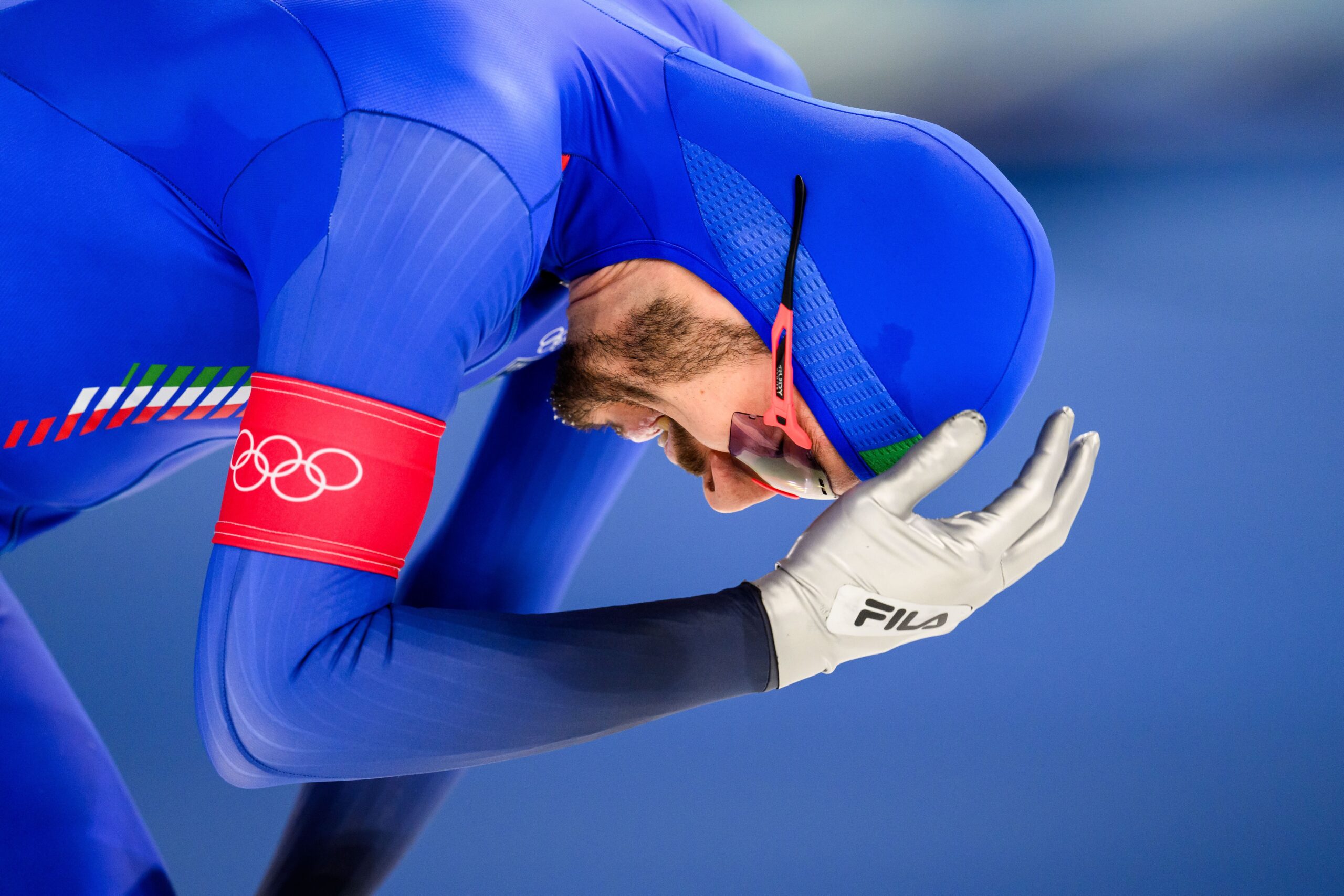 Davide Ghiotto of Italy looks dejected in men’s 10000m speed skating during day 7 of the 2026 Winter Olympics on February 13, 2026 in Milan.