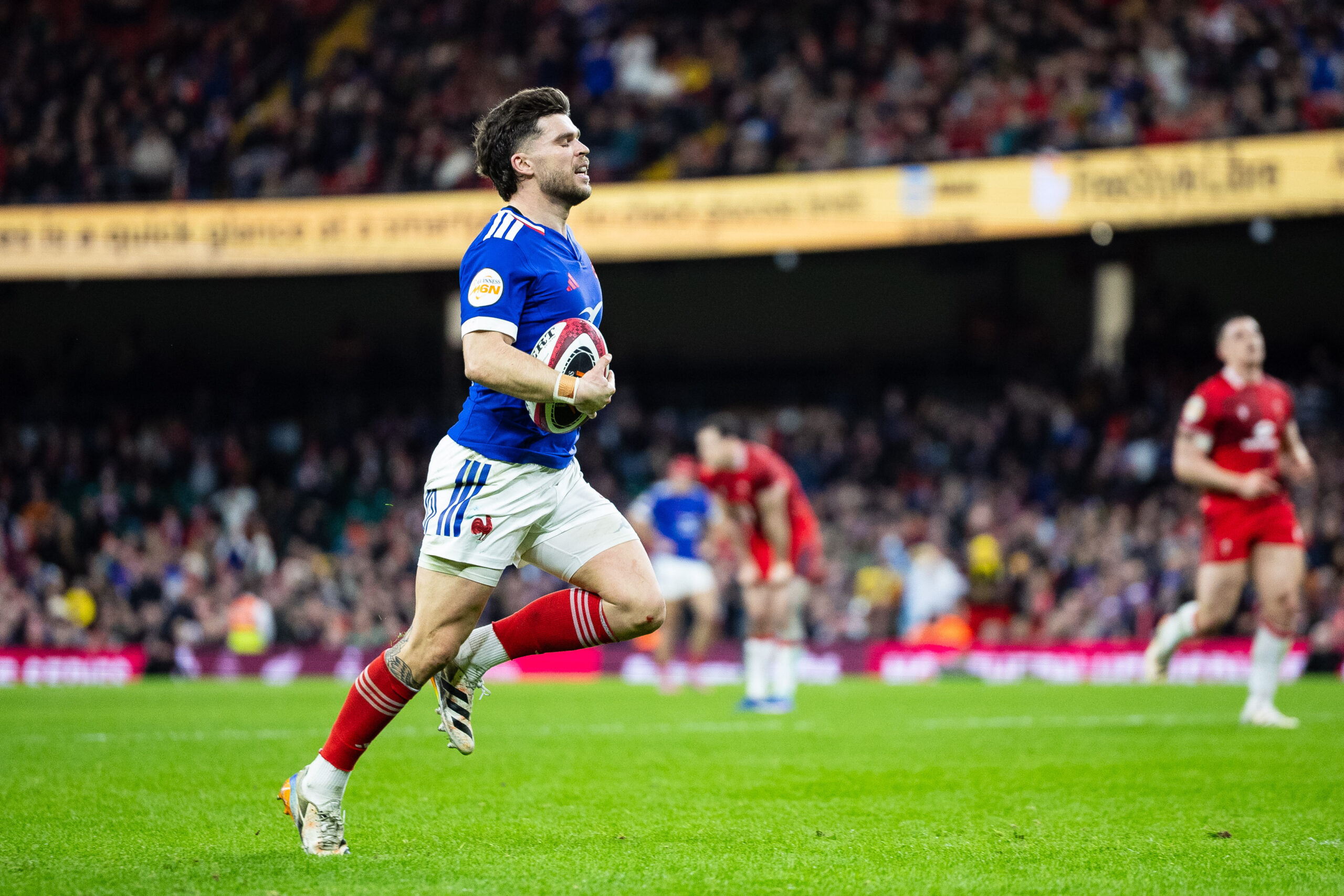 Matthieu Jalibert of France scores his sides fourth try during the 2026 Six Nations Championship, rugby union match between Wales and France on 15 February 2026 at Principality Stadium in Cardiff, Wales