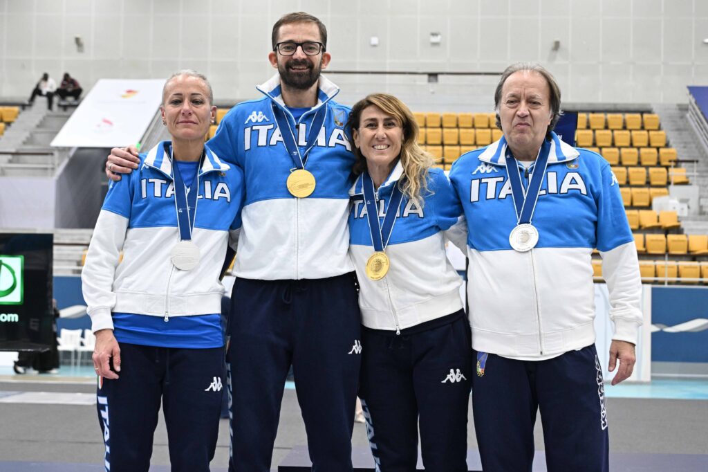 Inizia alla grande, con quattro medaglie, il Campionato del Mondo Master 2025 dell’Italia a Manama. In Bahrein, nella giornata inaugurale, suona due volte l’Inno di Mameli e la spedizione azzurra balza subito in testa al Medagliere per Nazioni con due ori e due argenti. Una finale tutta italiana è valsa il tetto del mondo per Costanza Drigo nella sciabola 50+ dopo un bellissimo match tutto tricolore con Daniela Colaiacomo, alla quale è andata la piazza d’onore. Gioia d’oro per Federico Bollati nella spada 40+, campione del mondo grazie ad una stoccata perfetta alla priorità. Quarta medaglia di giornata per uno splendido Giuliano Pianca che ha chiuso in seconda posizione dopo una gara di altissimo livello. Si è fermata ad un passo dal podio la prova di Margherita Camerin e Rosangela Topatigh nella sciabola 60+.