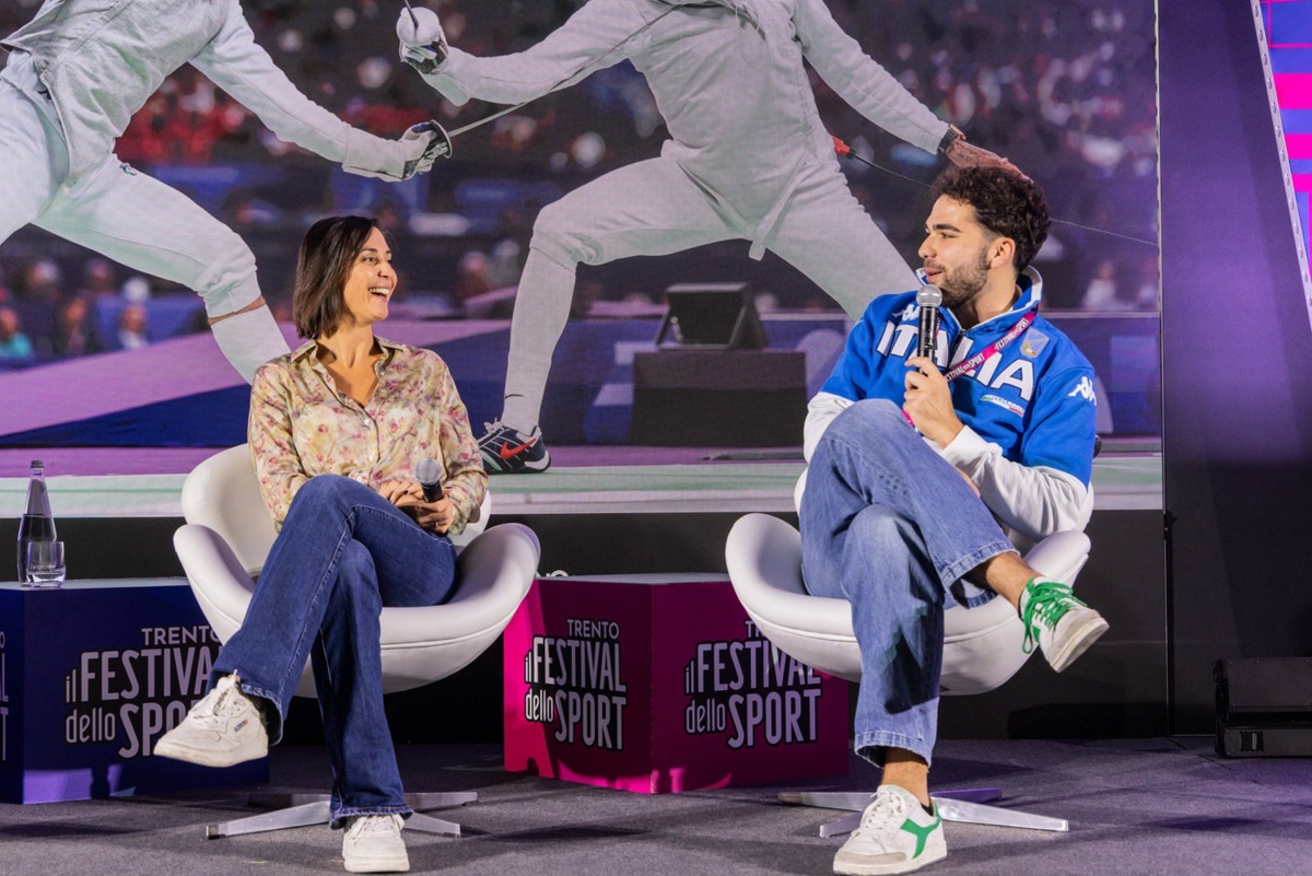 Dal Gran Premio Giovanissimi “Renzo Nostini” Trofeo Kinder Joy of Moving, mai vinto, alla doppia medaglia olimpica di Parigi 2024. Filippo Macchi è stato autentico mattatore, nel sabato del Festival dello Sport di Trento, dell’incontro intitolato “La gioia di muoversi”. Il fiorettista azzurro ha condiviso un palco di super campioni, di cui è stata moderatrice d’eccezione Rachele Sangiuliano, con la tennista Flavia Pennetta, vincitrice degli US Open 2015, e l’olimpionico della ginnastica Yuri Chechi, il “signore degli anelli”, in un talk speciale che ha celebrato il ventennale di Kinder Joy of Moving, progetto di responsabilità sociale dell’azienda Ferrero che da oltre quindici anni affianca la Federazione Italiana Scherma e che ha portato sul campo, in pista, in pedana e in regata oltre 60 milioni di bambini nel mondo. Solo nell’ultimo anno, in Italia, gli eventi sono stati oltre mille, con 600mila ragazzini coinvolti. Alla presenza del Presidente e Amministratore Delegato di Ferrero Commerciale Italia, Fabrizio Gavelli, e di Valentina Martini, Head of Corporate Development di Save the Children, lo schermidore delle Fiamme Oro si è raccontato a tutto campo.