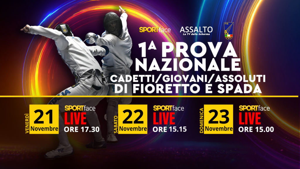 La diretta inizierà alle 15:00 su “Assalto – La TV della Scherma”, visibile gratuitamente su Sportface TV tramite semplice registrazione.