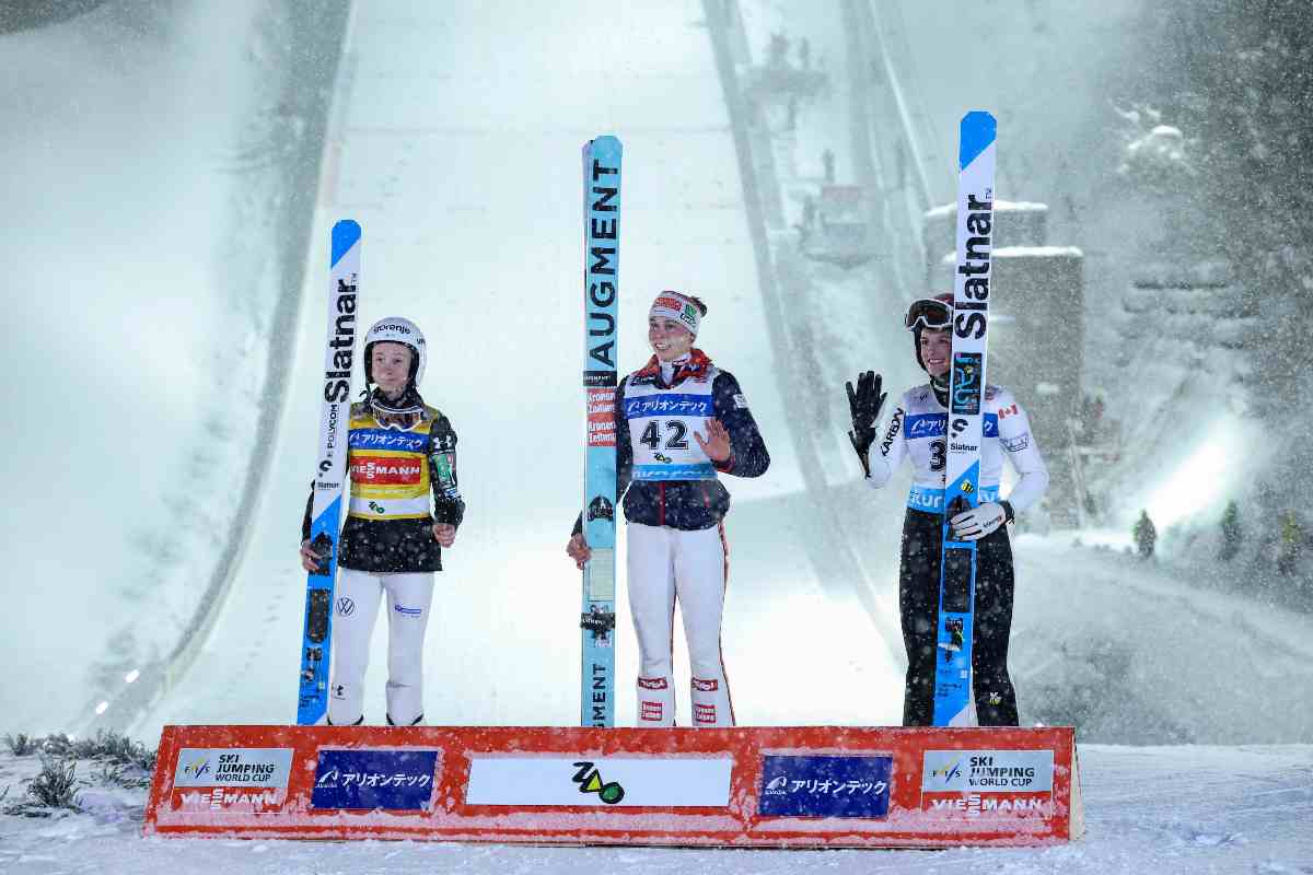 Sfortunata la beniamina di casa Nozomi Maruyama, quarta a 22,7 punti dalla vetta. La giapponese ha perso un paio di posizioni con il salto finale, mancando l’appuntamento con il podio che avrebbe avuto un peso importante anche in ottica classifica generale. Il distacco da Prevc nella graduatoria di Coppa del Mondo sale ora a 408 punti.